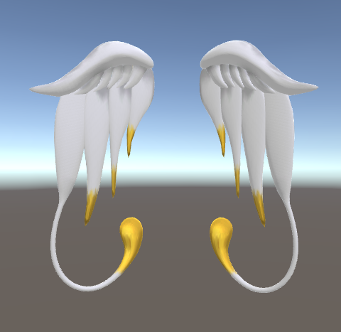 Wings made from scratch in blender and painted in substance painter. This is a unitypackage, inside is an fbx, base texture, normal map, and metallic map. Just add dynamic bones and poiyomi's toon shader, I used 7.0.100!